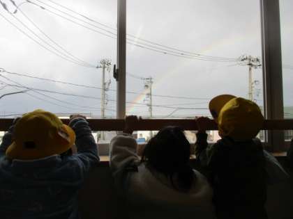 「みんな!虹だ!虹が出ているよ!」