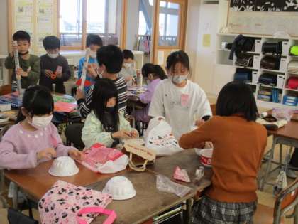 グループで協力して作っています。相談しながら、工夫してがんばっています!