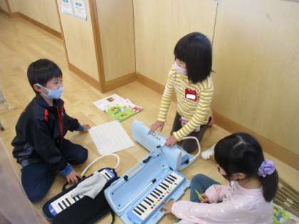 音楽の学習で、「タンタンタン」のリズムに合わせて旋律づくりをしました。