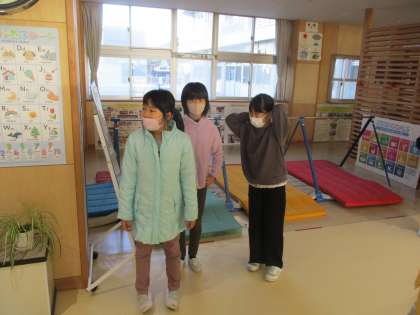 玄関に立って、「おはようございます」と元気に言っています。