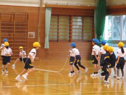 今日は、縄の上をジャンプする練習をしました。上手に跳べましたね!