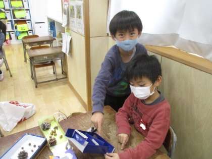 秋の占いや、ドングリを動かして迷路を進むゲーム、ピタゴラスイッチ等楽しいおもちゃがたくさんありました。