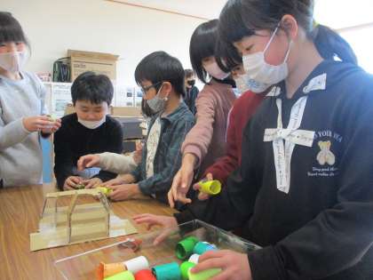 昼休みは、おもちゃ会社が作ったおもちゃで楽しく遊びました。「わにわにパニック」「ジャンピングゲーム」「ボーリング」など、どれも大人気のおもちゃでした!