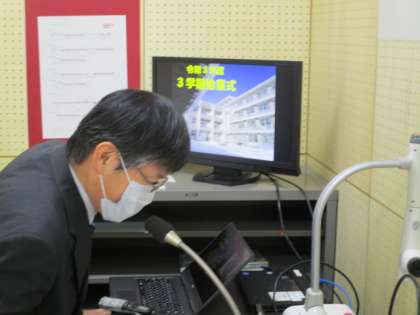 始業式は、校内テレビ放送で行いました。