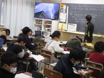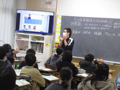 1組担任が2組の社会科を、2組担任が1組の理科を教えています・・・