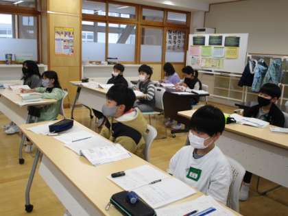 算数の時間、少人数で学習しています。