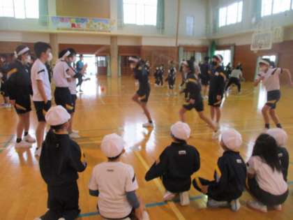 6年生のお兄さんお姉さんに、8の字跳びを教えてもらいました。