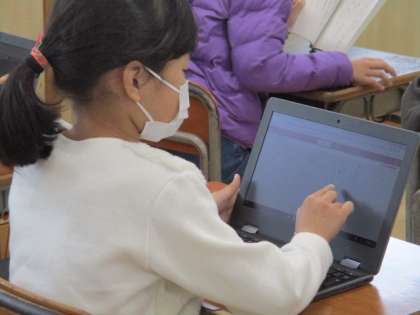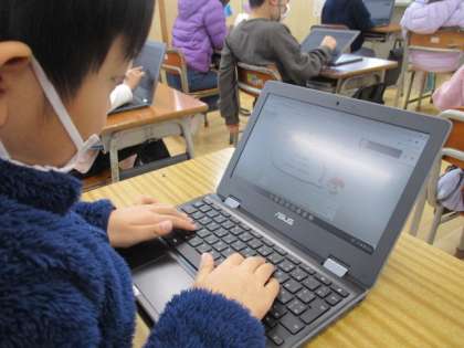休み時間は、クロムブックでお絵かきをしたり、タイピングをしたり、勉強したりしています。
