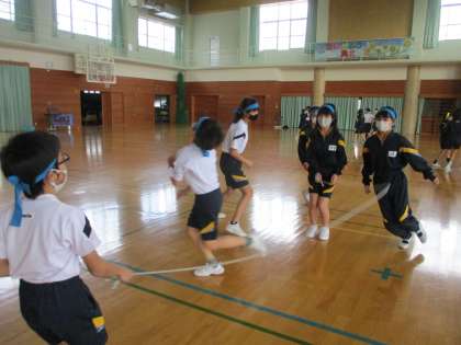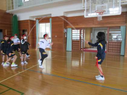 団の仲間と声を掛け合い、温かな雰囲気で長縄跳び練習をしました!
