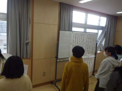 パートに分かれて、ブレスの取り方を話し合っています・・・
