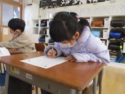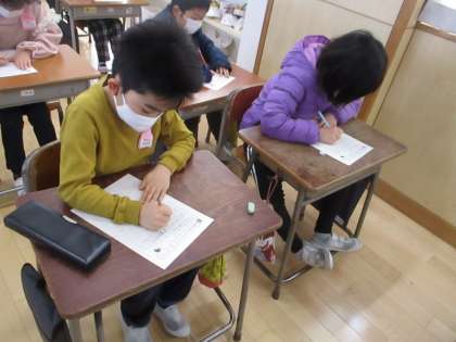 お友達に気持ちよく伝えるために、どのような伝え方がよいのか考えました。ワークシートに自分の考えを一生懸命書いています。