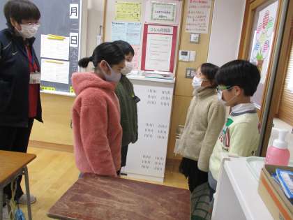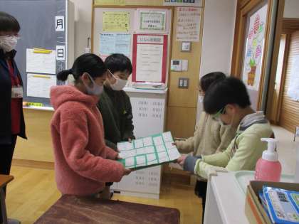 昨日の「総合の発表」を見た感想を届けに行き、5年生にお礼を言いました。