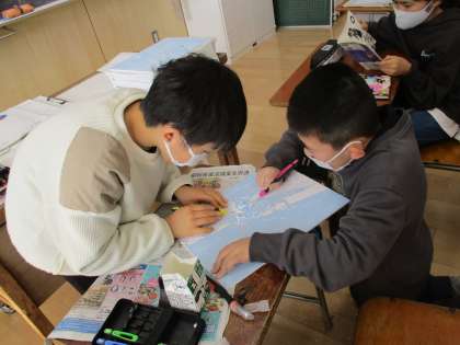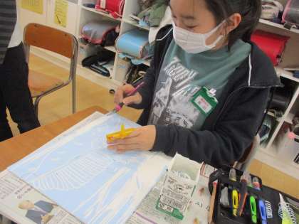 版画を彫り進めています(4年)