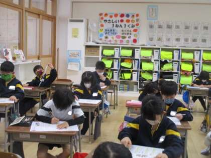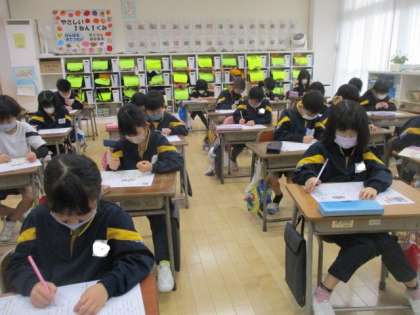 楽しく学習した「たぬきの糸車」のテストをしました。