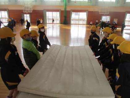みんなで協力すると、重いマットでも簡単に運ぶことができます。
