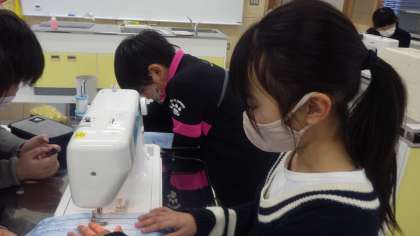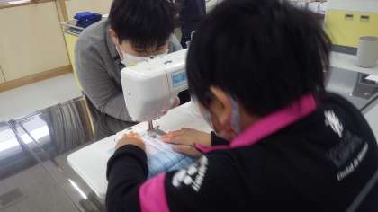縫い目の大きさを変えたり、上糸の調子を変えたりして縫いました。