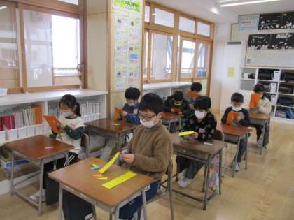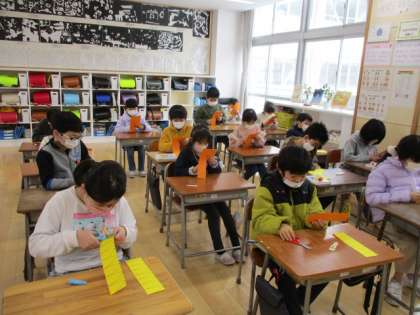 これまでお世話になった6年生の皆さんに感謝の気持ちを込めて、お花の掲示物を作りました。