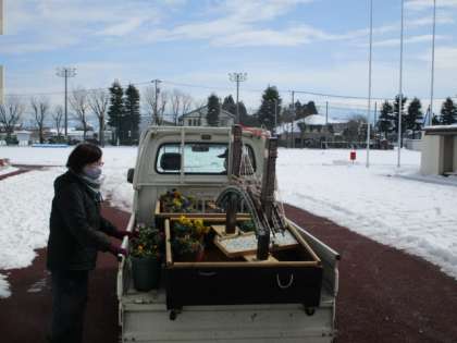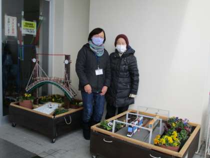 富山市緑を育てる推進員の方から、すてきな花のオブジェをいただきました。環水公園、ライトレール等がモチーフになっています。