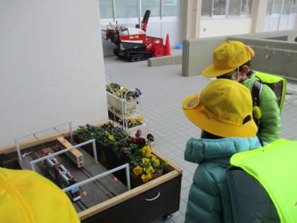地域の方が学校に持ってきてくださった花壇を眺めていました。