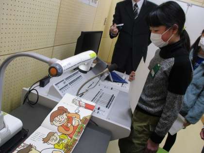 図書委員会の体験で、本の読み聞かせをしています。