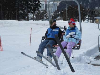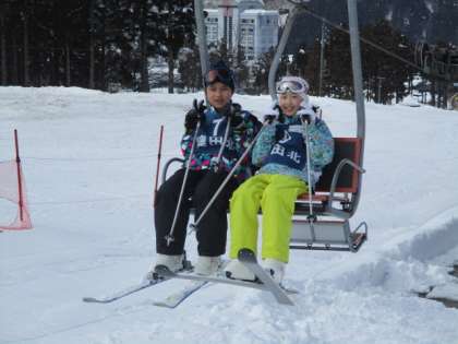 お天気に恵まれ、最高のスキー日和でした。午前の練習の後、カレーライスを食べ、午後からも練習しました。一人一人、上達が見られました。さっそうと滑る姿は、とても格好よかったです。