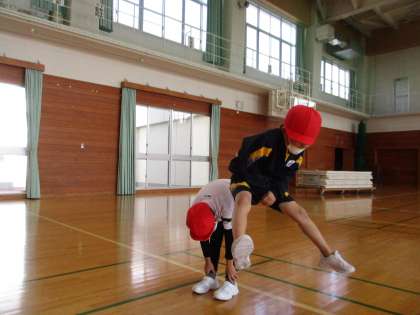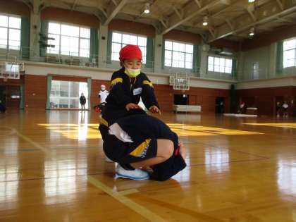 跳び箱の授業に向けて、馬跳び練習をしています。
