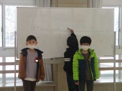 計算スラスラグループは、友達の言った数字のたしざんやひきざん、計算カードを披露しました。