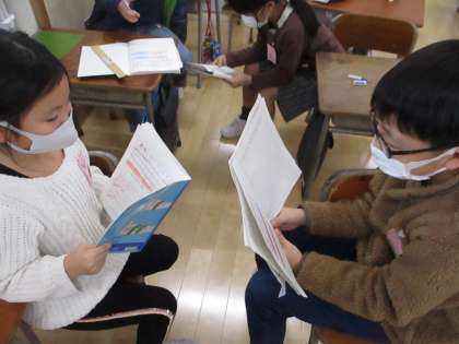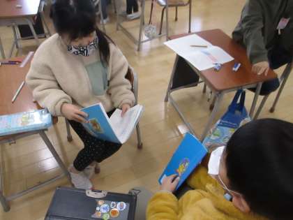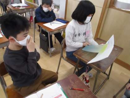 自分で考えた問題を友達に発表しています。