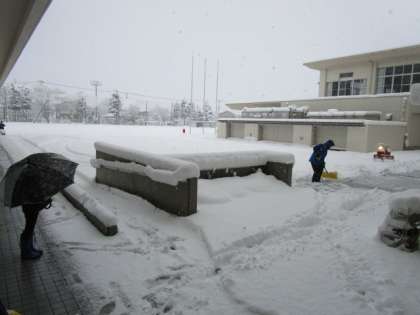 想定外?の大雪に、早朝から職員も除雪に追われました・・・