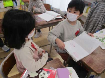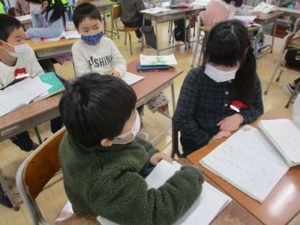 「なぜ、隣の子にバスケットをあげたのか」の考えを書いたり、「自分だったら、バスケットをあげるかどうか」を話したりする活動にも楽しそうに取り組んでいました。