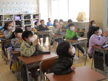 6年生の「卒業を祝う会」を見ています・・・