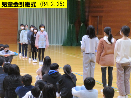 体育館に5年生と6年生だけが集い、引継式を行いました。