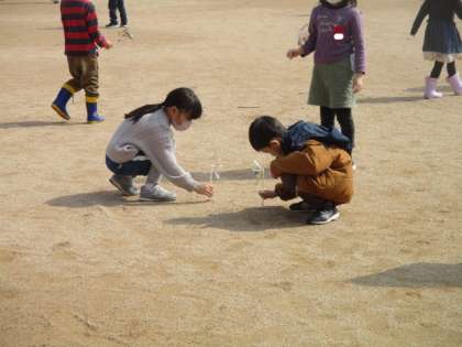お天気が良く、気温も高かったのでグラウンドで風車を回しました。