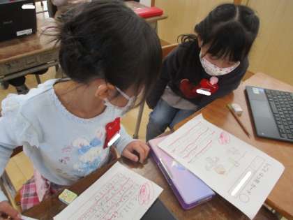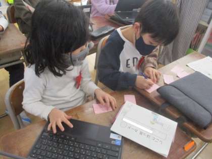 教えてもらった「こつ」を伝え合っています。