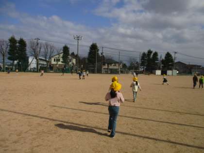 がんばったみんなと一緒に、グラウンドで遊びました。