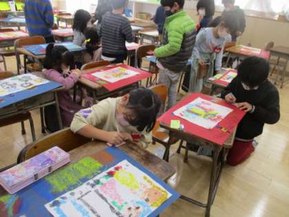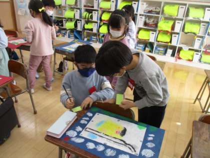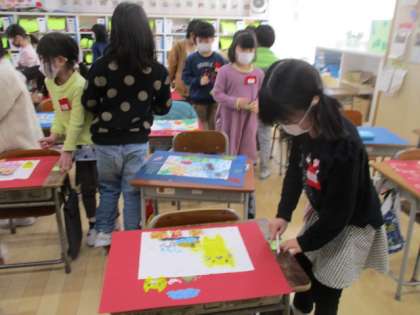 お友達の作った版画の鑑賞をしました。