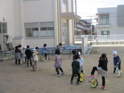 お天気が続いて、一輪車のスペースも使えるようになりました。