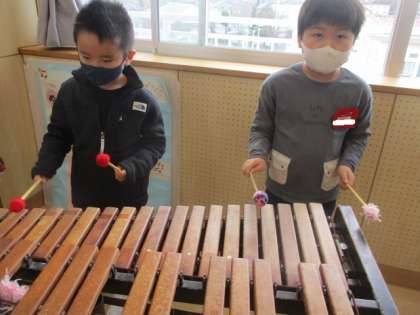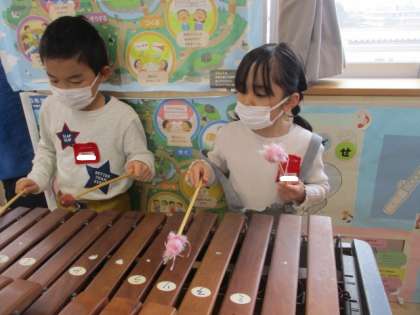 6年生さんのお礼の演奏のように、いろいろな楽器をつかって演奏してみました。