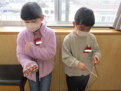 たくさんの楽器に触れられて、うれしそうな子供たちです。