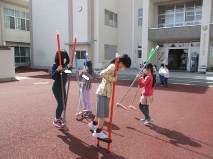 氷鬼や竹馬、砂遊びをして、楽しそうです。