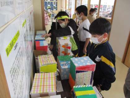 手作りのUFOキャッチャーで遊んだり、友達の図工の作品を見たりしています。