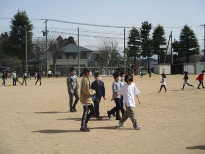 広いグラウンドを走り回っています!