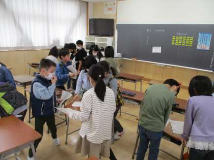 春休みにしたことや、2年生で楽しみなことについて友達に質問しながらビンゴを目指しました。