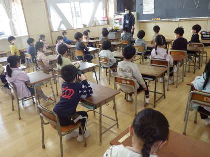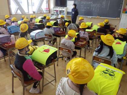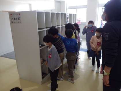 避難訓練のお話や下足ロッカーの使い方を勉強しました。下校の準備も自分でやりました!
