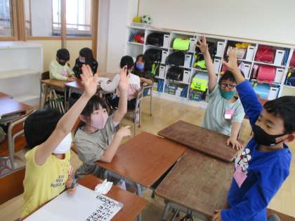 学級目標を決めるために、どんなクラスにしたいかを話し合いました。