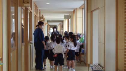先生のお話を静かに聞いたり、体育に行くために整列をしたりしています。