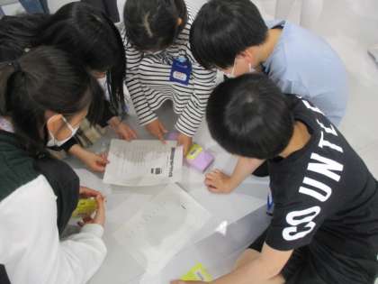 図書室の使い方を改めて教えてもらいました。図書室クイズにも取り組みました。楽しみながら、協力して解いています。