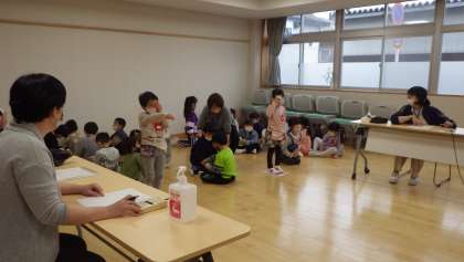 初めての眼科検診でした。保健室の先生のお話をよく聞いてがんばりました。