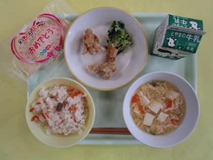 ちらし寿司 牛乳 鶏肉のから揚げ