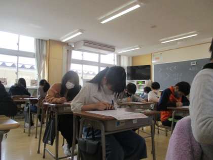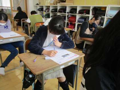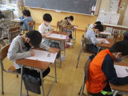 5年生で学んだ内容を、初めてテストしました。一生懸命に取り組んでいます。